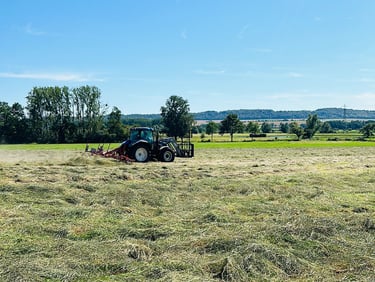 Nous produisons notre propre fourrage sur nos jolies parcelles Normandes. Delaplace est spécialisée dans la production de foin et de paille en petits ballots.